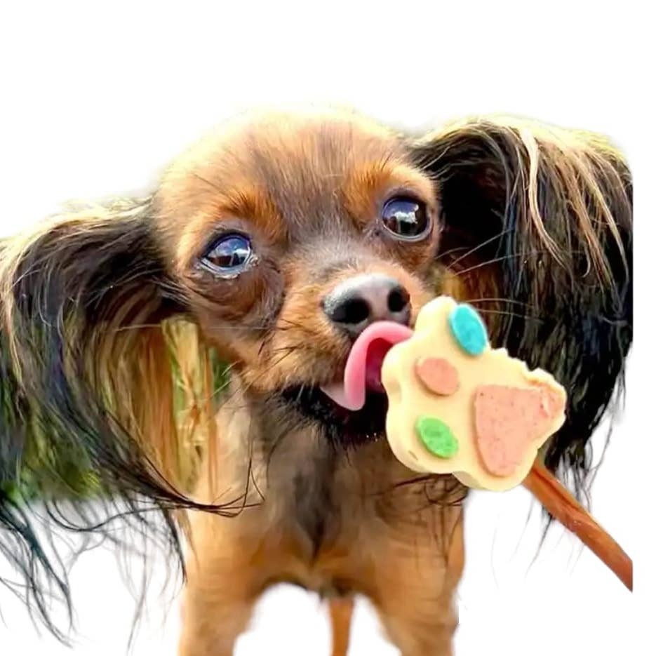 voor honden Gemaakt van een gezonde mix van plantaardige vetten, plantaardige koolhydraten en meel - gecombineerd met natuurlijke kleurstoffen zoals rode biet, zwarte bonen, zalmolie, enz. Dit product heeft een eetbare stengel gemaakt van gedroogde varkensdarmen
